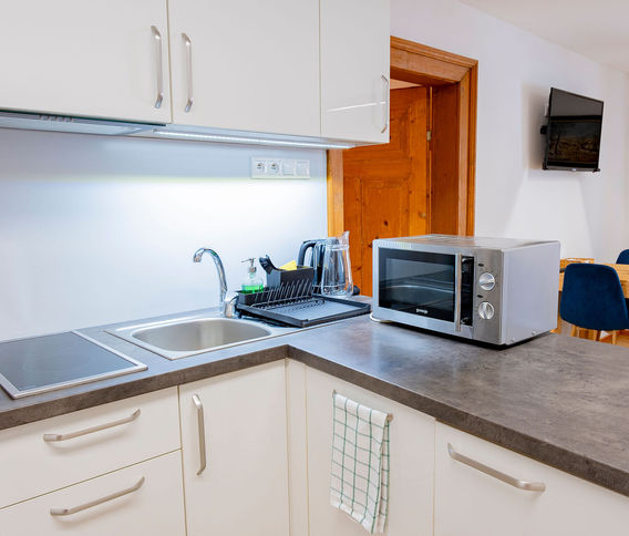 v novovybudovanej časti. Spoločenská miestnosť je riešená spolu s kuchynkou, spáleň je samostatná miestnosť. Apartmán je vybavený vlastnou kúpeľňou s WC a sprchou, veľkosť 47 m2.